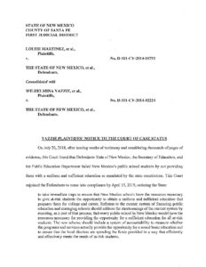 Notice-Yazzie Plaintiffs Notice to the Court of Case Status (June 2019)